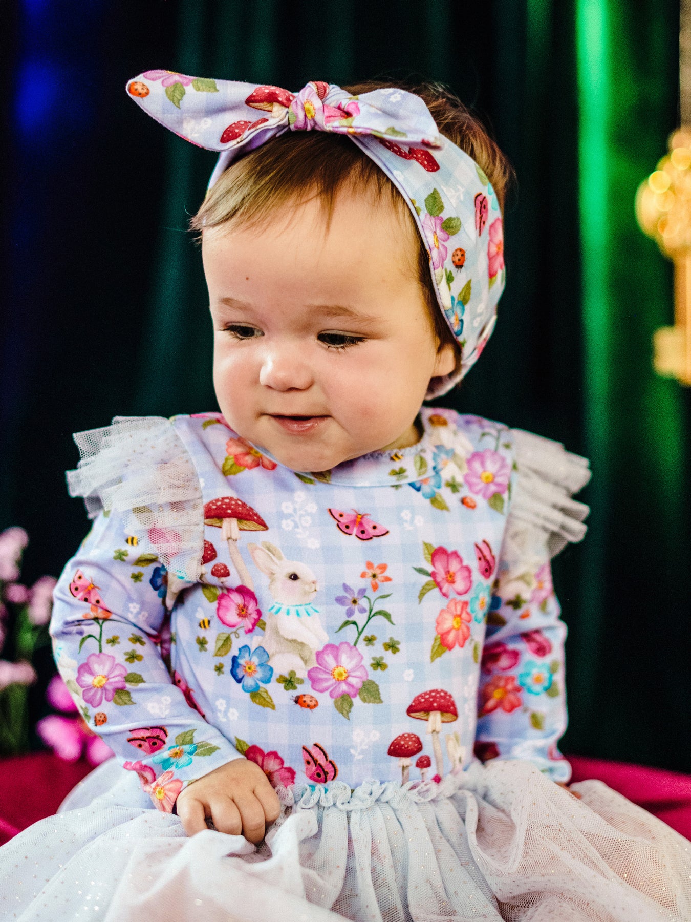 Add a flourish of storybook charm with the ‘Days of Enchantment’ Sweetie Headband from the Fleur Harris 'Days of Enchantment' collection. Crafted from soft cotton stretch jersey and digitally printed with Fleur’s much-loved illustrations, this sweet accessory features a wide elasticated band and soft velcro closure for gentle comfort and easy dressing. Perfect for completing whimsical everyday looks or special occasion outfits, it pairs beautifully with coordinating pieces for a truly enchanting ensemble.
