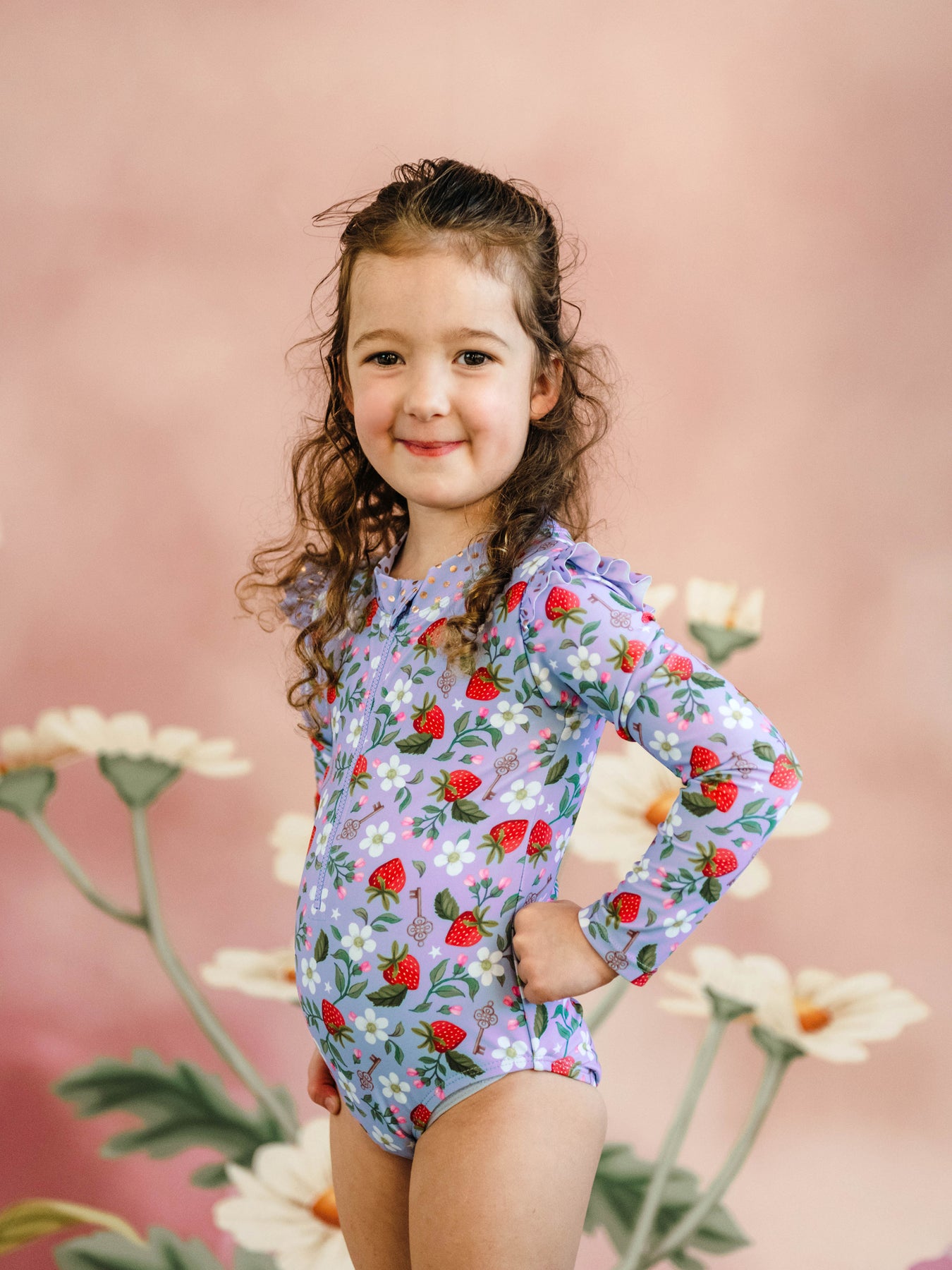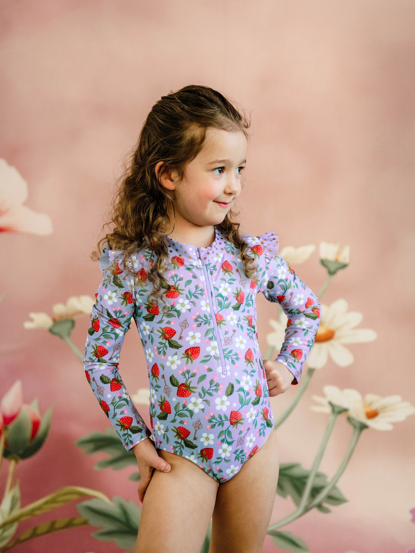 Set sail for a Summer of wonder with the Fleur Harris 'Hearts Floral' Delphine Junior One Piece Swimsuit, where sun safety meets whimsical style! Crafted from soft polyester elastane and adorned with Fleur's enchanting artwork, this long-sleeve one piece swimsuit is perfect for your little one's swimming adventures. Glittering metallic gold spot detailing and frills at the shoulders add a touch of magic, while the convenient zip-through front ensures easy dressing. With UPF 50+ sun protection, your little one can explore the seaside or splash in the pool both with safety and comfort.