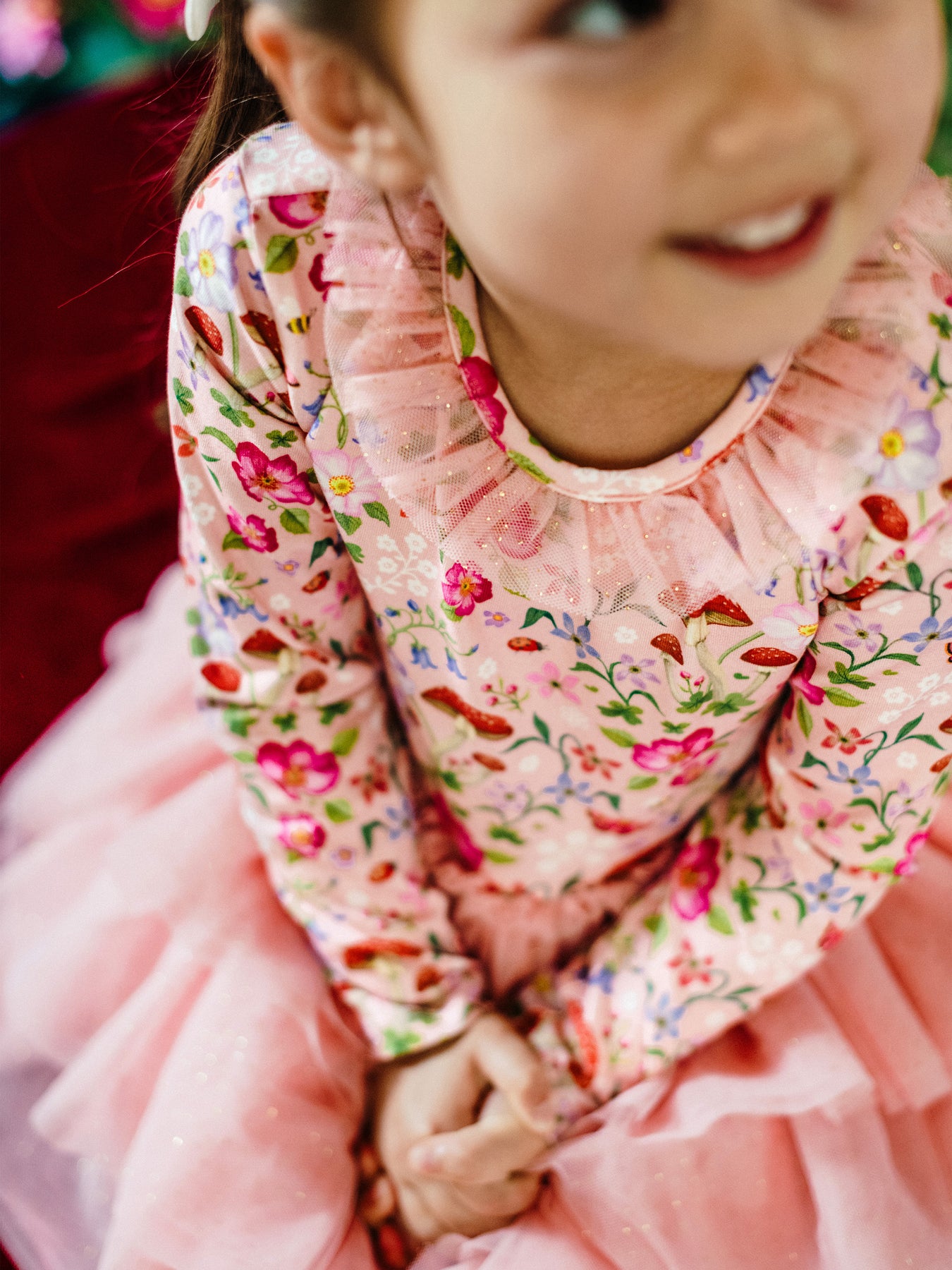 Tulle gathered frill at neckline