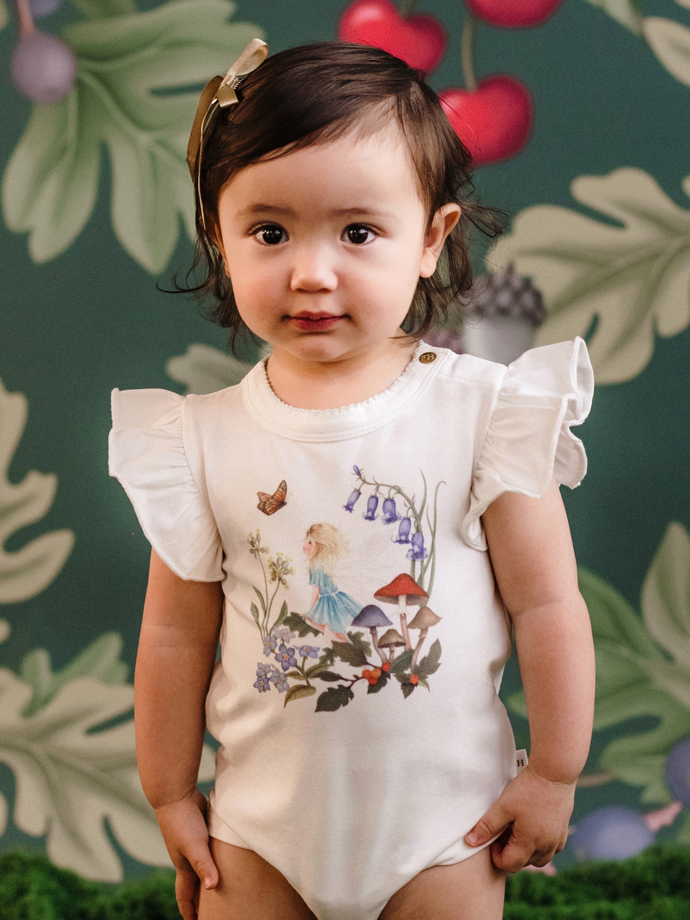 Delight in the Fleur Harris 'Silky's Garden' Bijou Bodysuit in the Fairy White colourway. This bodysuit is beautifully adorned with playful frills and features illustrations from the Fleur Harris x Enid Blyton 'The Magic Faraway Tree' collaboration. Soft breathable cotton elastane fabric is sure to keep your little one cosy and comfortable. Perfect to pair with leggings to complete your little one's look.