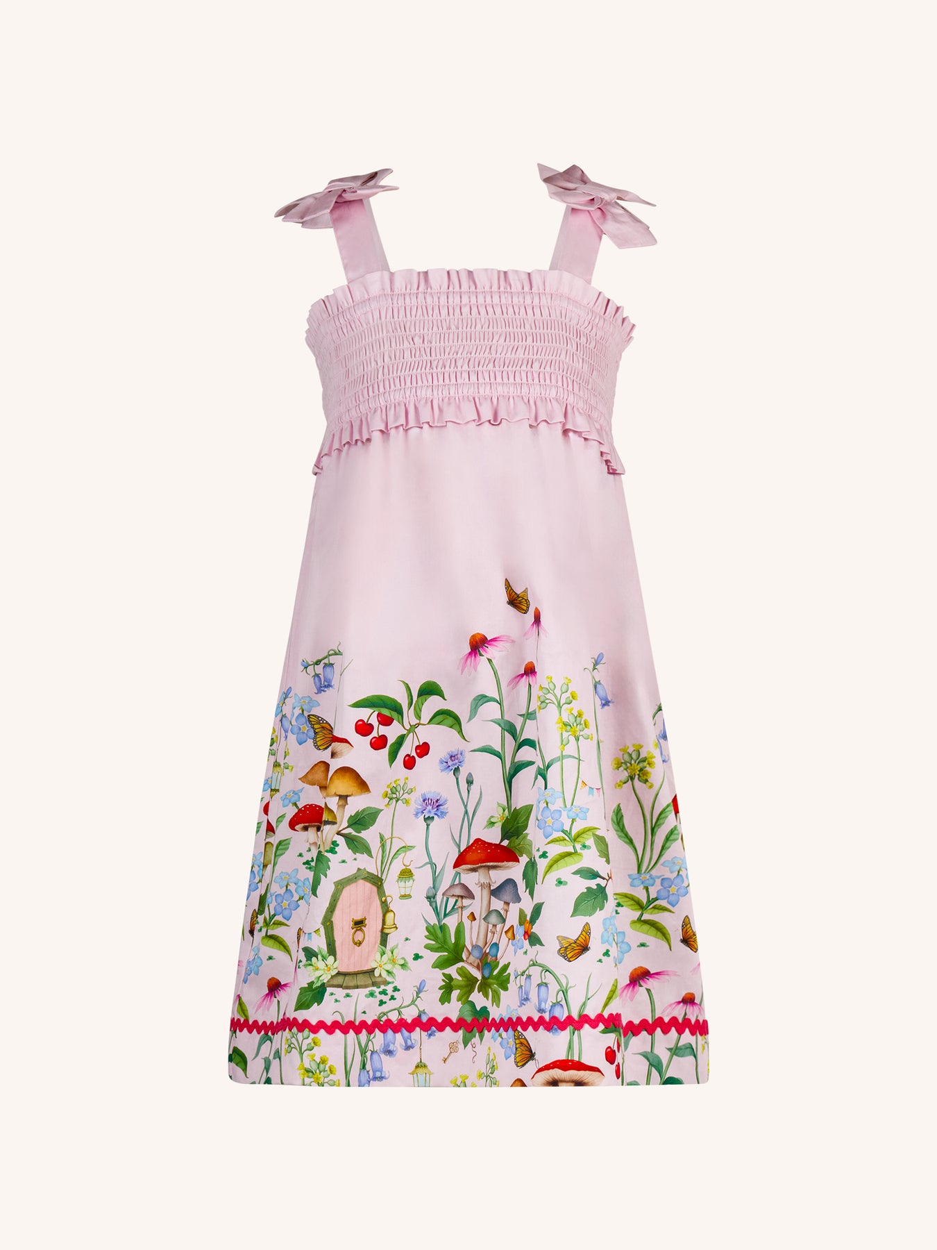 The Fleur Harris 'Enchanted Garden' Faraway Dress in the 'Sugar Pink' colourway will inspire magical fairy adventures with your little one. This beautifully designed dress features illustrations from the Fleur Harris x Enid Blyton 'The Magic Faraway Tree' collaboration. Perfect for special occasions and gifting to loved ones on their days of celebration.