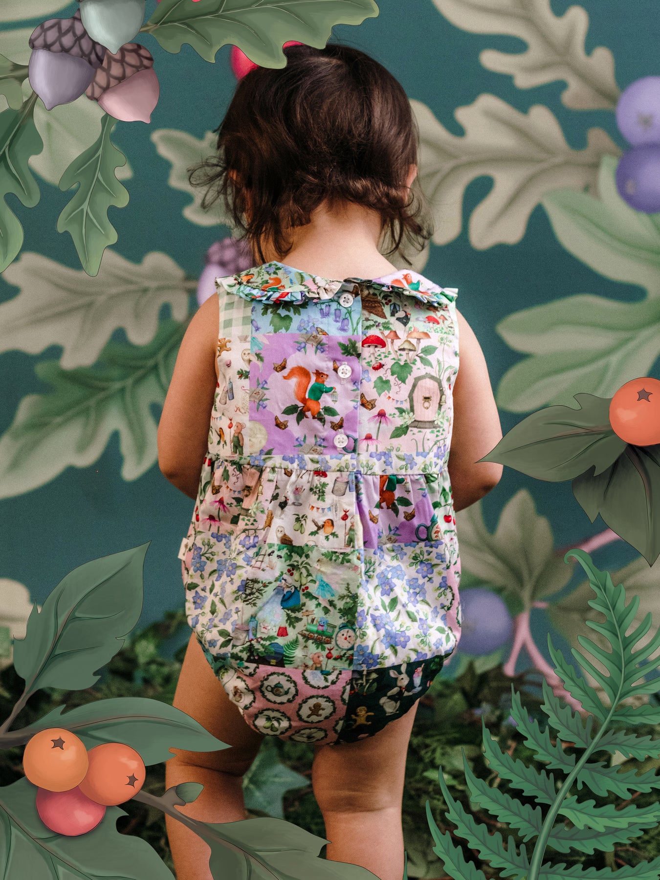 Embrace your little adventurer's imagination with the Fleur Harris x Enid Blyton 'The Magic Faraway Tree' Pretty Patchwork Romper. Made from soft linen fabric that is delightfully comfortable, it features gorgeous illustrations from the Fleur Harris x Enid Blyton 'The Magic Faraway Tree' collaboration as an all-over print. Perfect for layering, this playsuit is made for magical adventures!