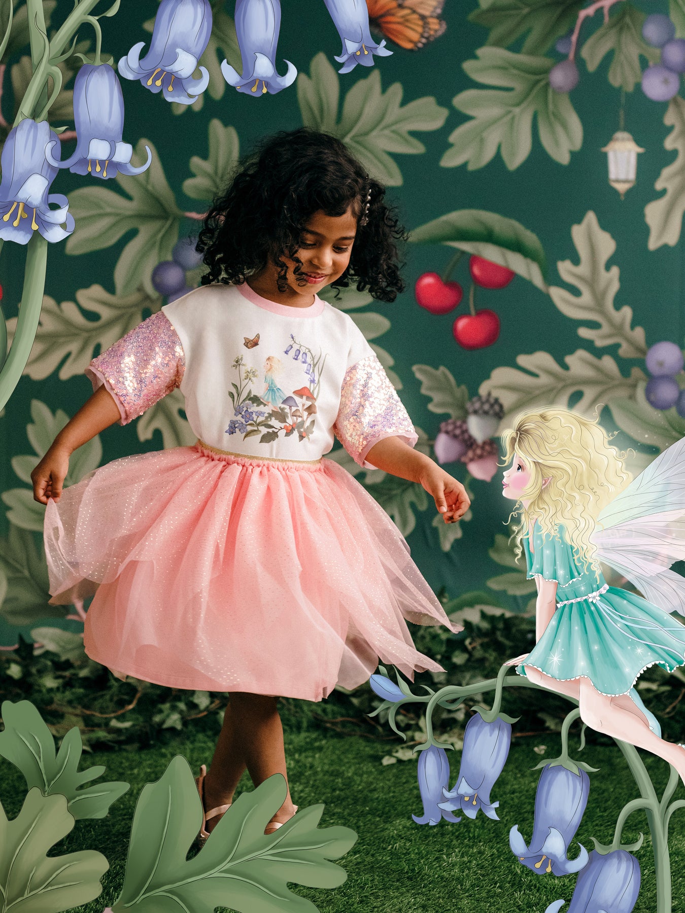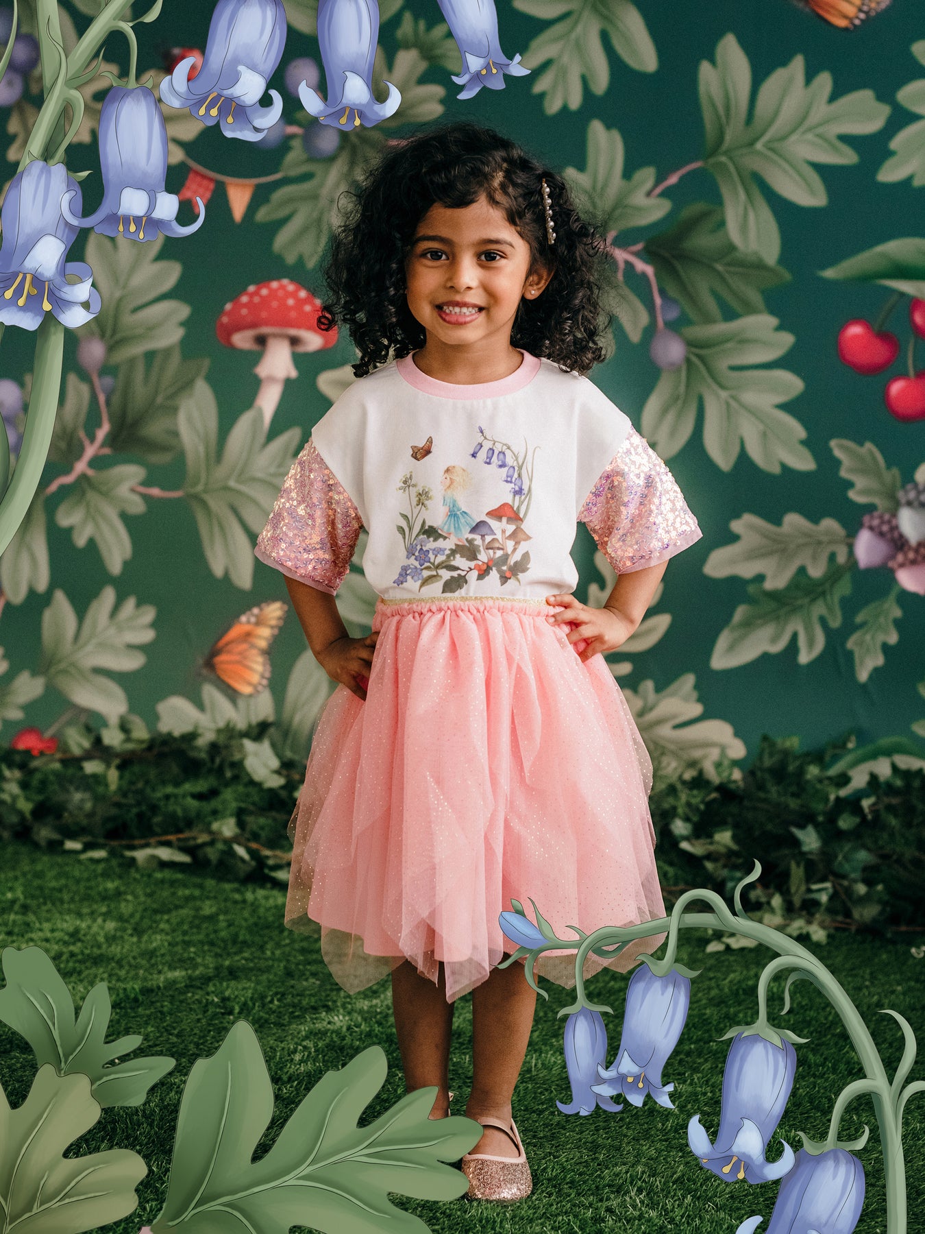 Create magical memories to last a lifetime in the Fleur Harris x Enid Blyton 'The Magic Faraway Tree' Twirly Fairy Skirt, in the gorgeous 'Sugar Pink' colourway. Created with a soft stretch cotton lining and a gorgeous glittering tulle overlay skirt. It will be sure to capture your little one's heart and transport their playtime to the magical wonderland of their imagination.