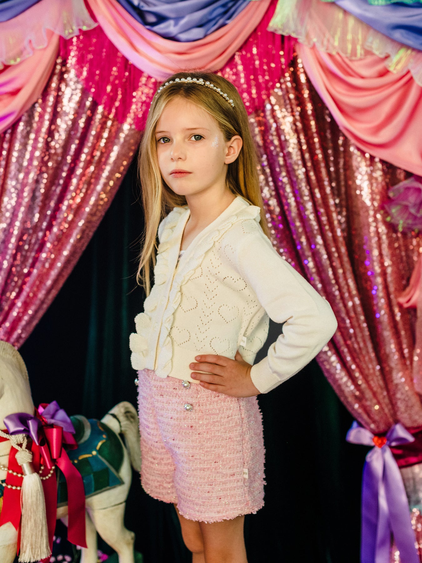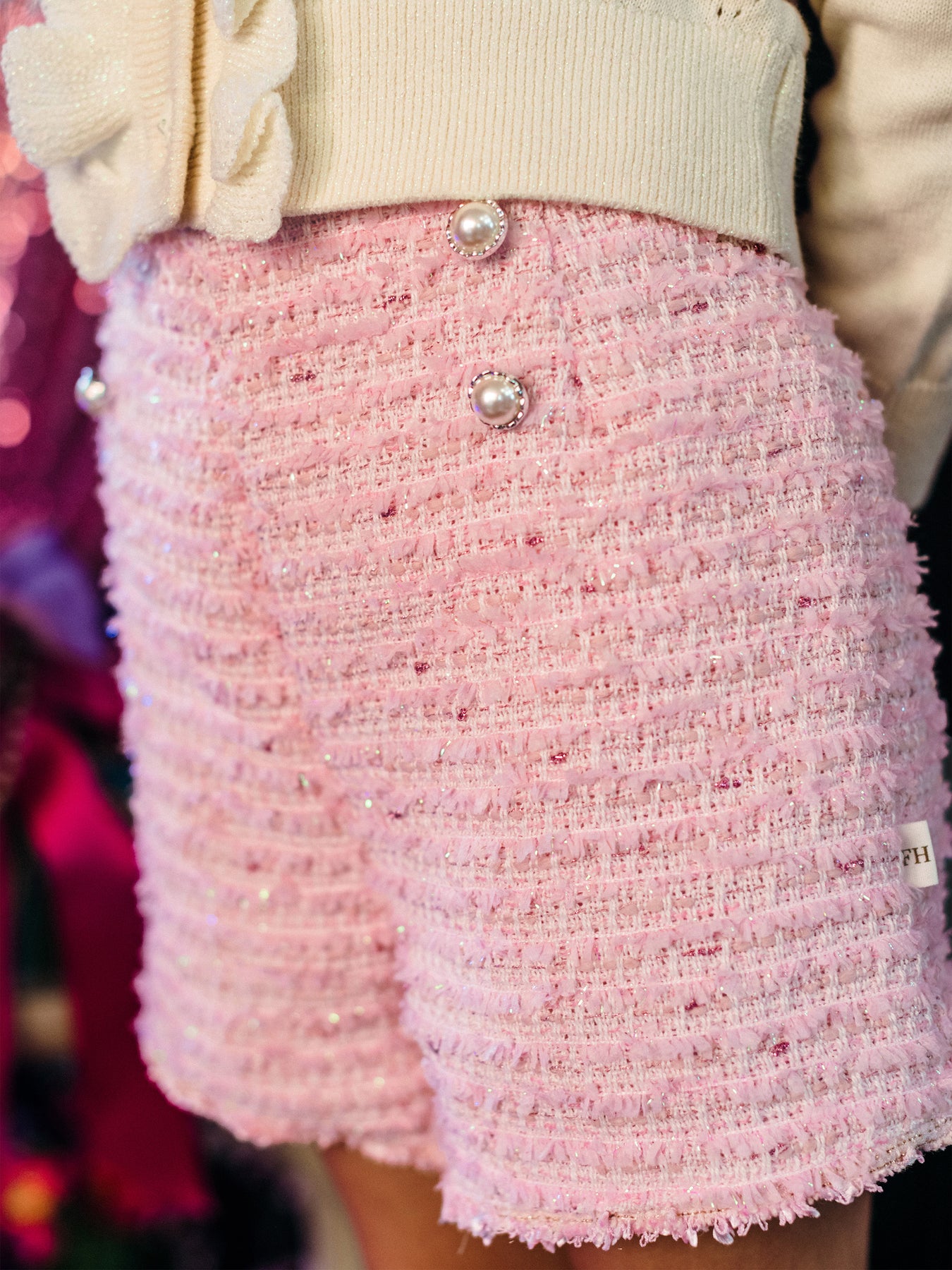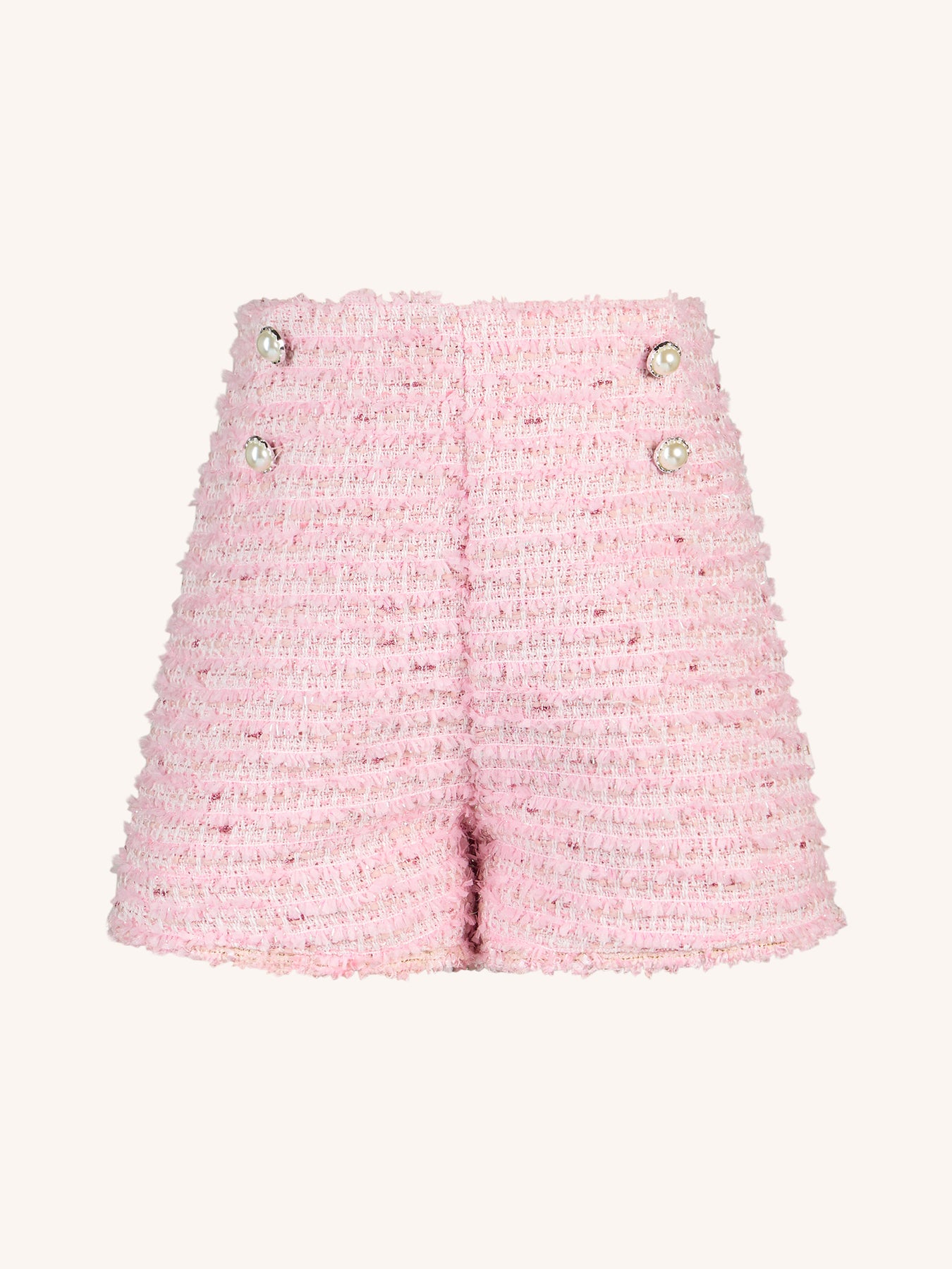 Add a touch of sophistication to their wardrobe with the ‘Days of Enchantment’ Graceful Short in Pink from the Fleur Harris 'Days of Enchantment' collection. Made from soft polyester wool boucle with a satin lining, these shorts feature a front button detail, centre back zip, and delicate ric rac trim for a charming finish. Perfect for dressy occasions or pairing with playful tops from the collection, they bring a hint of elegance to everyday outfits.
