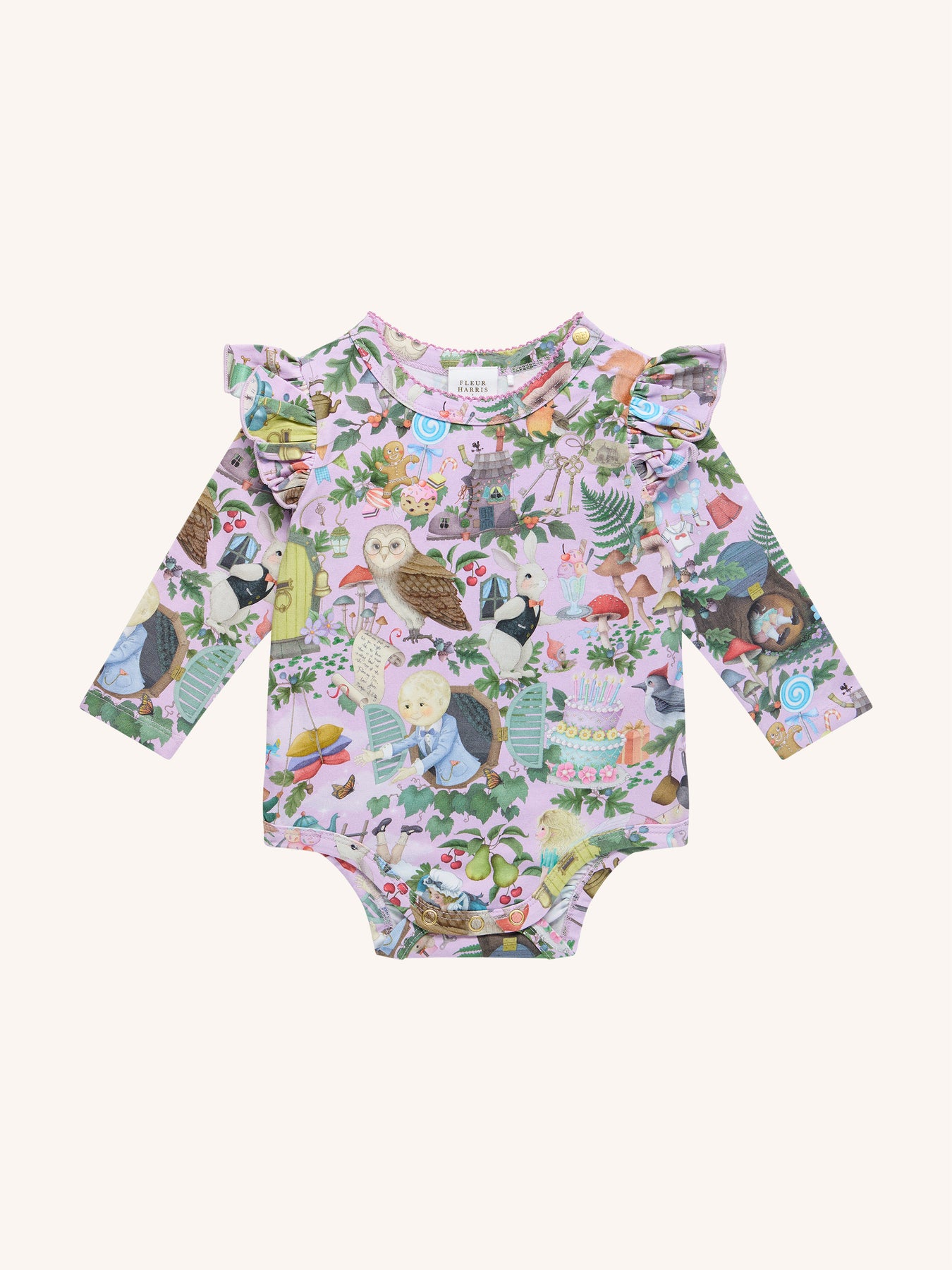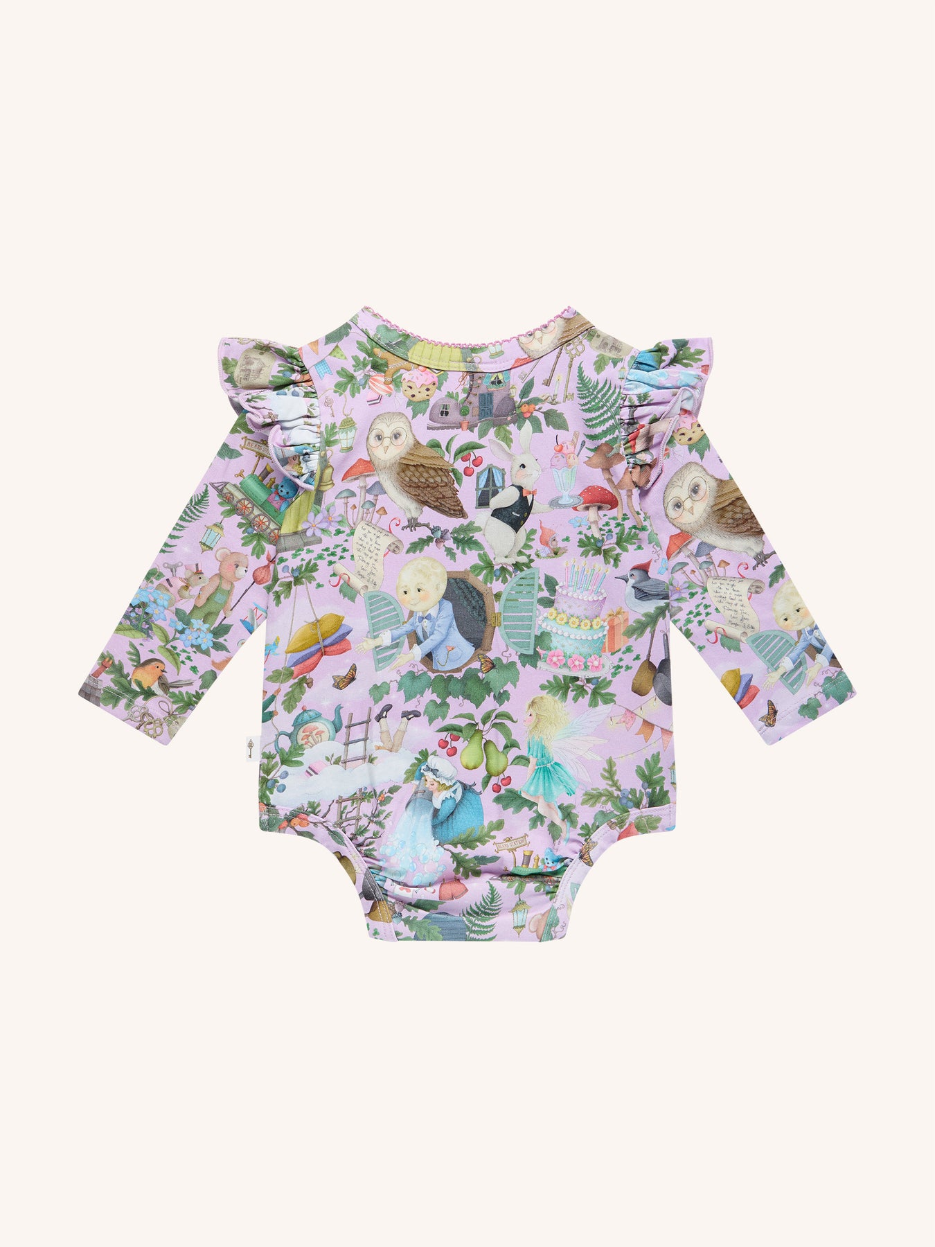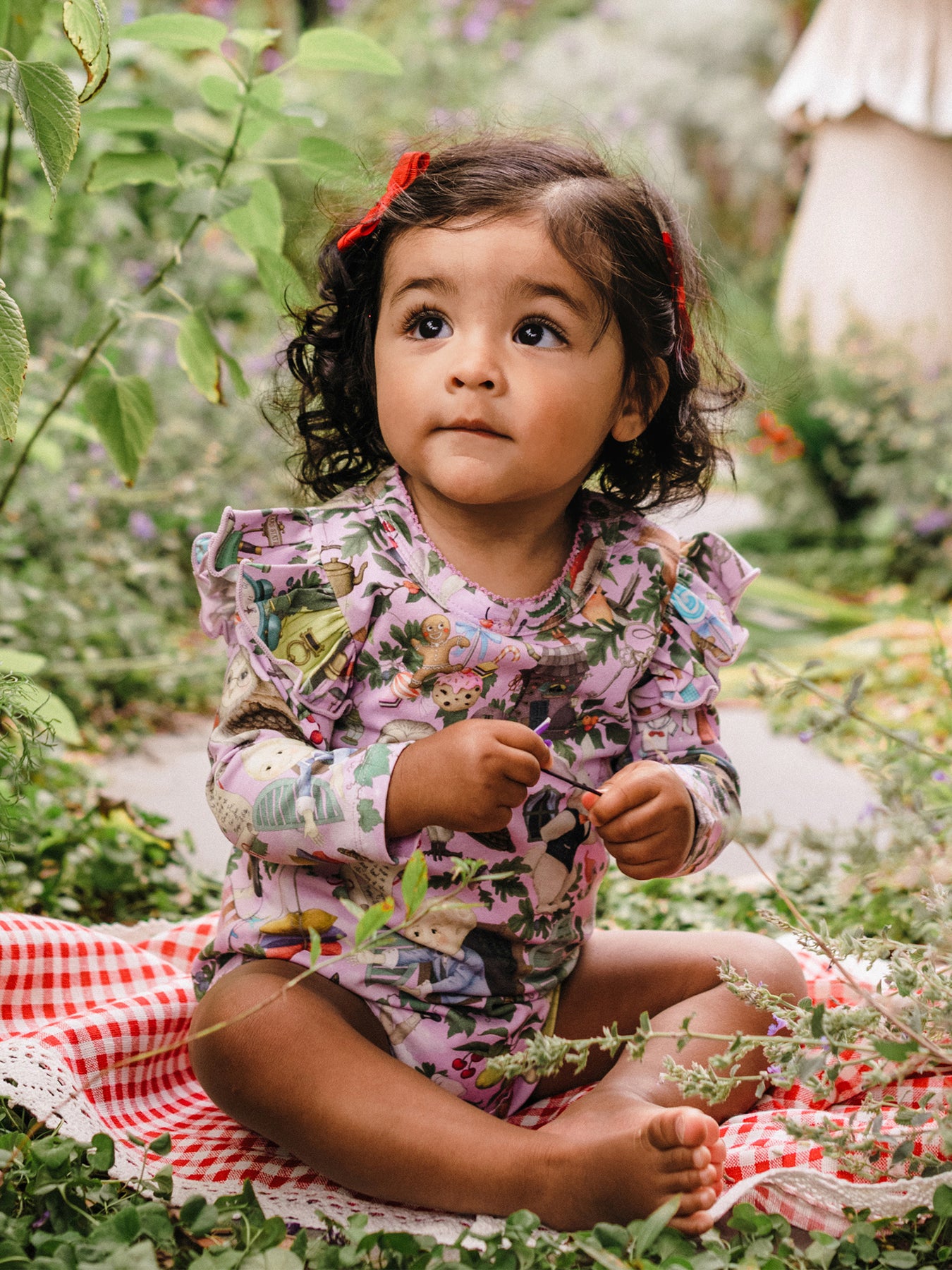 Wrap your little one in storybook charm with the ‘Faraway Friends’ Kindness Bodysuit from the Fleur Harris x Enid Blyton 'The Magic Faraway Tree' collection. Crafted from soft cotton elastane jersey, this bodysuit features long sleeves, delicate gathered frills at the sleeves, and snaps for ease of nappy changing. Finished with the FH and magic key branded pip and a swing tag that doubles as a gift tag, it’s perfect for magical everyday wear or special storybook-inspired moments.
