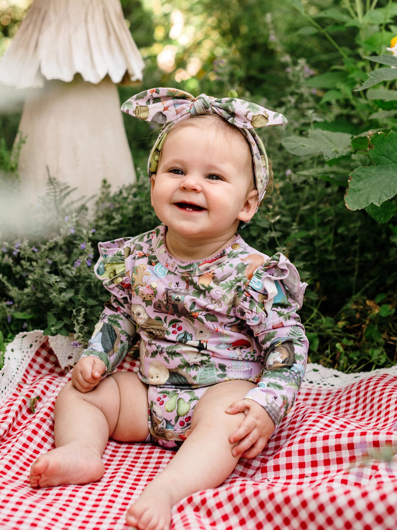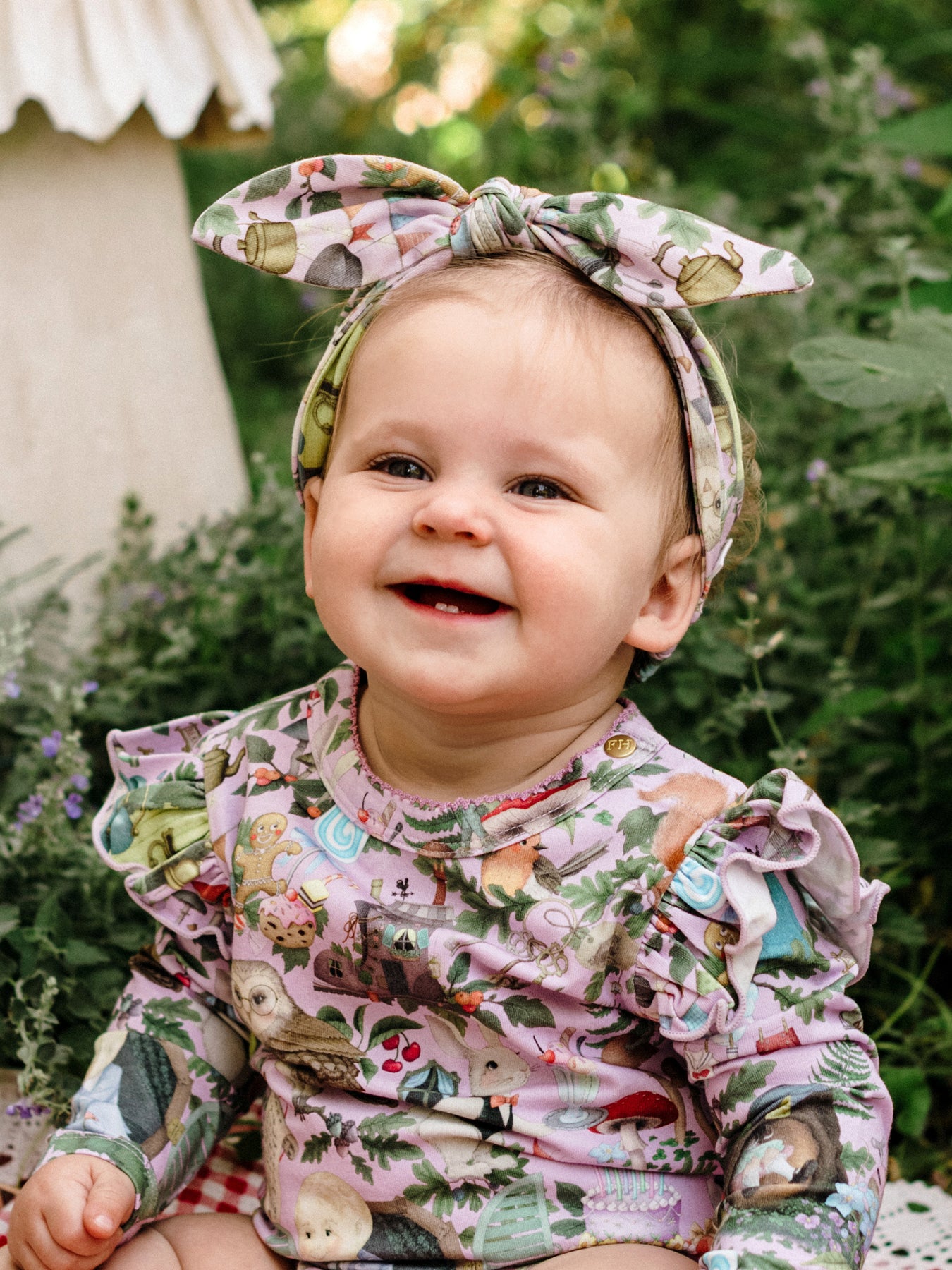 Add a touch of storybook magic to baby's outfit with the ‘Faraway Friends’ Sweetie Headband from the Fleur Harris x Enid Blyton 'The Magic Faraway Tree' collection. Made from soft cotton elastane jersey, this sweet accessory showcases Fleur's artwork inspired by Enid Blyton’s timeless tales, finished with an elasticated back for a comfortable and flexible fit. Perfect for everyday wear or special occasions, it’s a charming way to complete any magical ensemble.