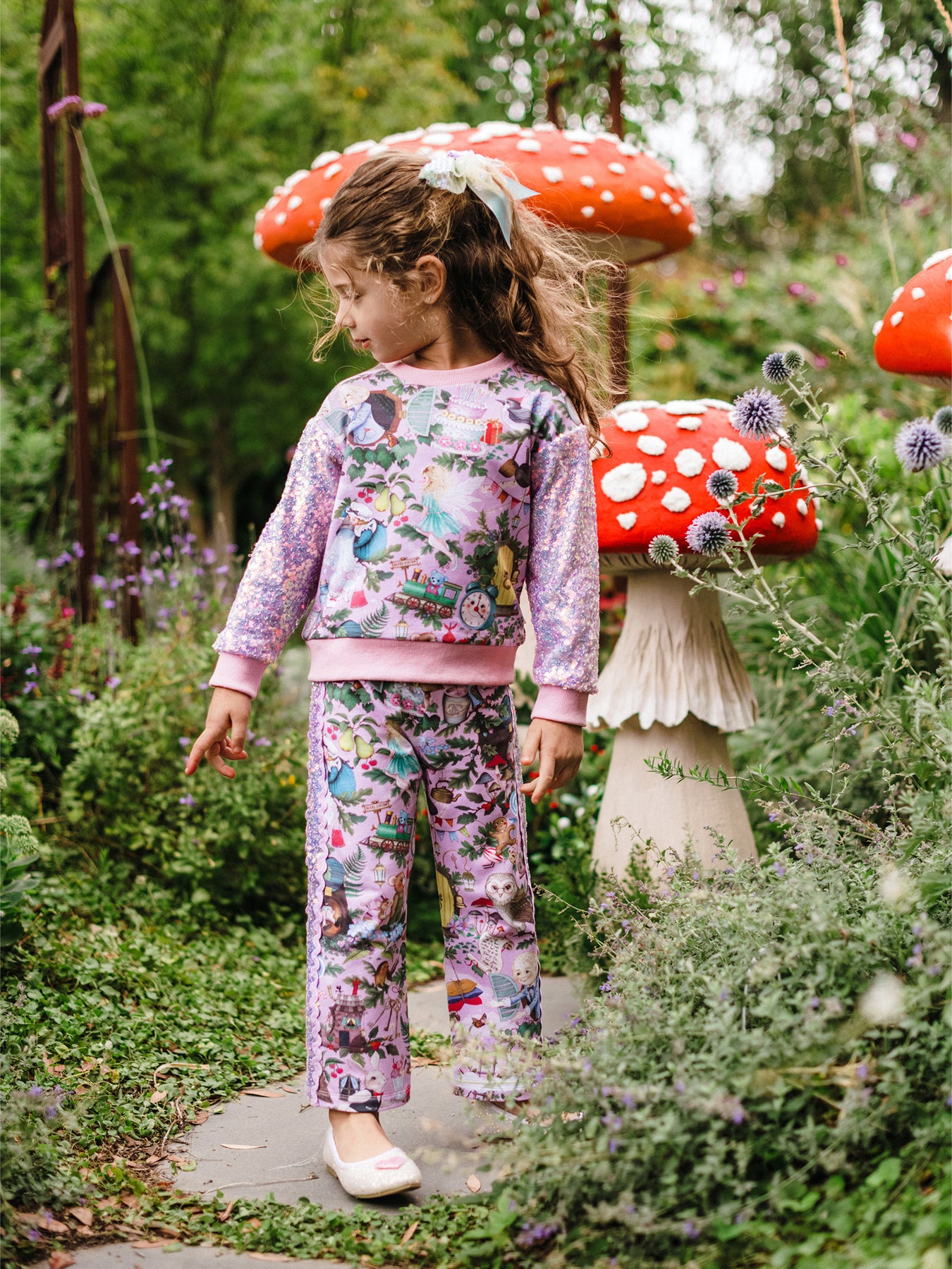 Cotton elastane French terry, digitally printed with Fleur's 'The Magic Faraway Tree' inspired artwork
